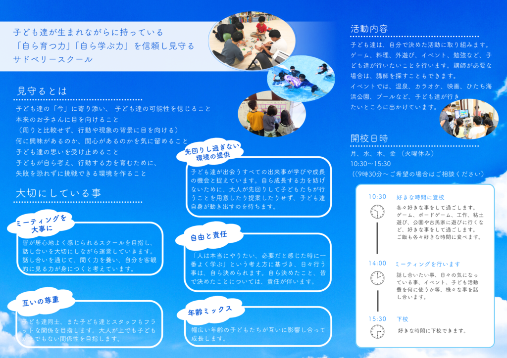 つくば市でサドベリースクール(オルタナティブスクールの1つ)を行っています。