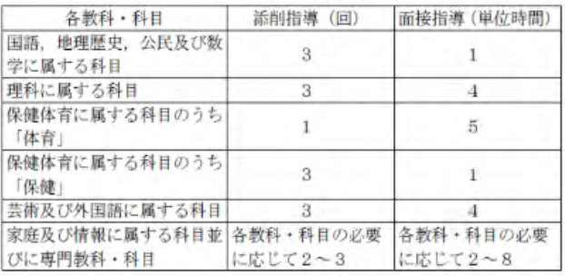面接指導の時間数は科目の単位数によって違いがあります。理科や外国語、体育のような実験や実習、演習のある科目は時間数が多くなっています。