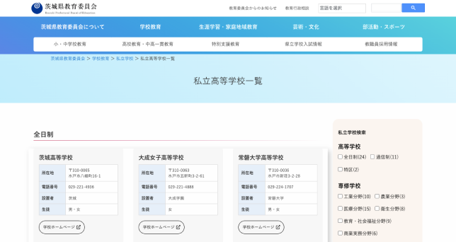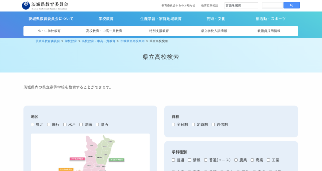 - 茨城県内の高校を、県立・私立も含めた一覧・エリア別・学科別に検索出来ます。各学校のパンフレットが一覧で選べ、ネット上で読むことが出来ます。各校の情報はこちらからご覧ください。