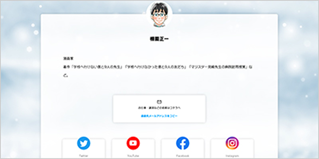 - 実体験をもとにした不登校児の物語「学校へ行けない僕と9人の先生」「学校へ行けなかった僕と9人の友だち」の著者であり、不登校に関する講演活動もされています。